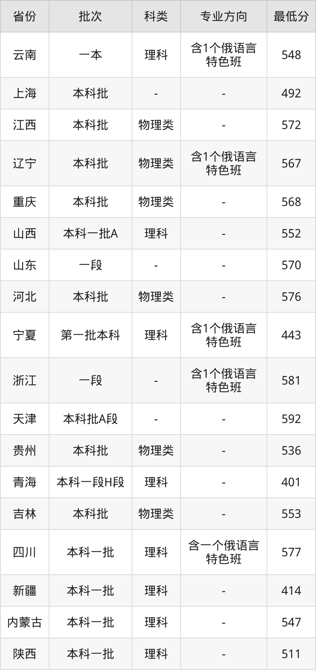 理科577分(含一个俄语言特色班、位次43810名);