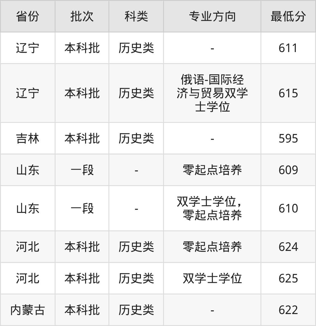 历史类611分(位次1368名),历史类615分(俄语-国际经济与贸易双学士学位、位次1154名);