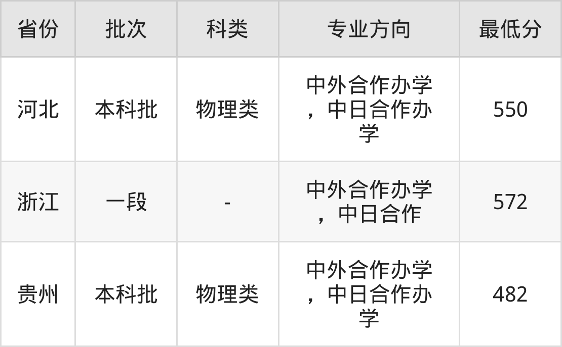 物理类550分(中外合作办学,中日合作办学、位次56080名);
