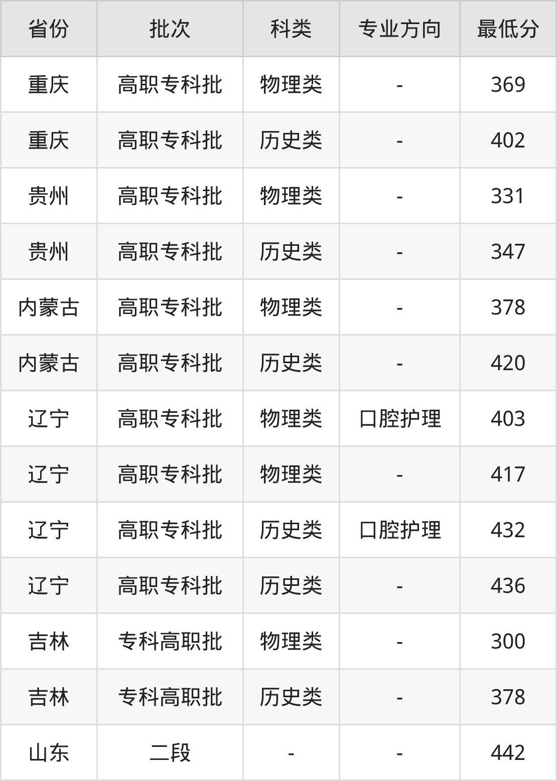 | 高职专科批 | 物理类 | 口腔护理 | 403 | 103747 |