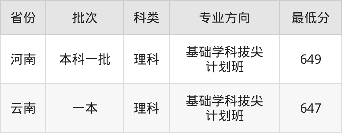 理科647分(基础学科拔尖计划班、位次1124名)。