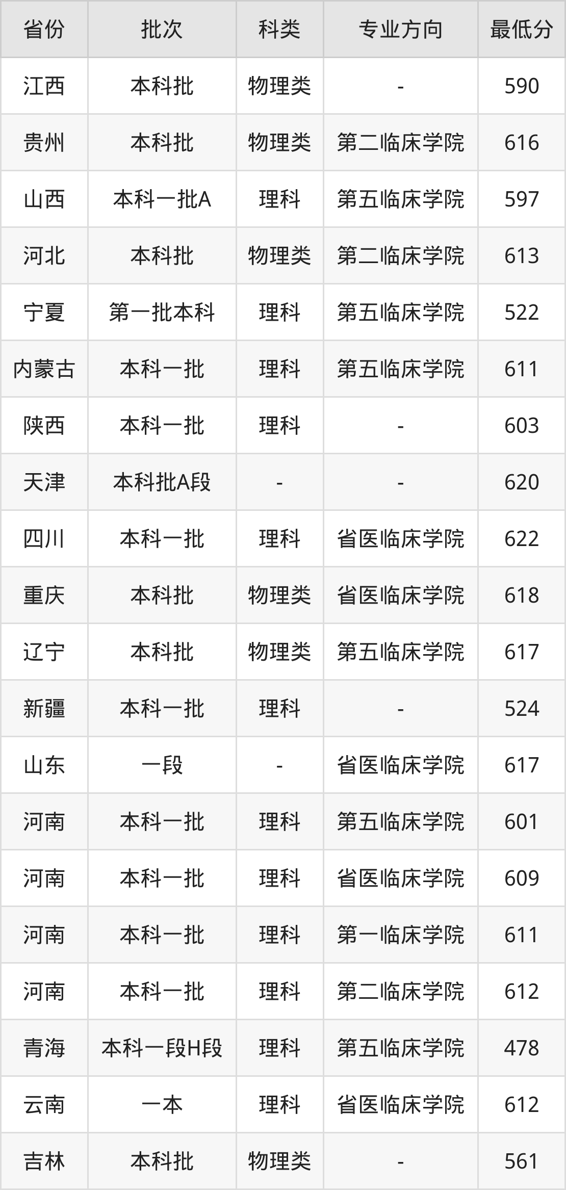 | 本科一批 | 理科 | 省医临床学院 | 609 | 18059 |