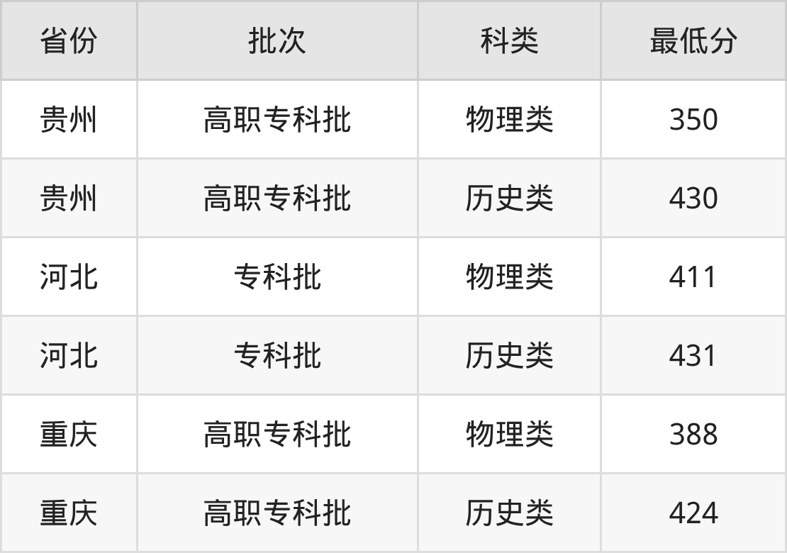 三明医学科技职业学院护理专业录取分数线2025各省汇总显示,省外招生最低分为河北411分、重庆388分、贵州350分。更多专业分数详情、选科要求、专业简介等均可在正文查阅。