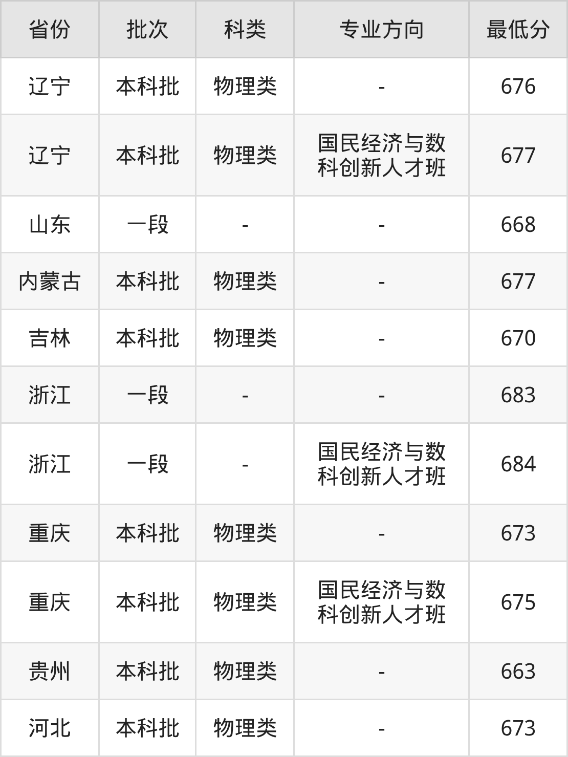 物理类676分(位次475名),物理类677分(国民经济与数科创新人才班、位次431名);