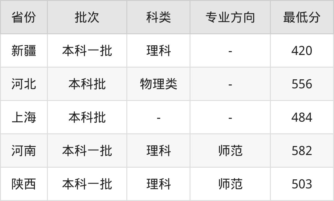 | 批次 | 科类 | 专业方向 | 最低分 | 位次 |