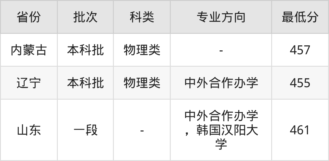 461分(中外合作办学,韩国汉阳大学、位次282668名);