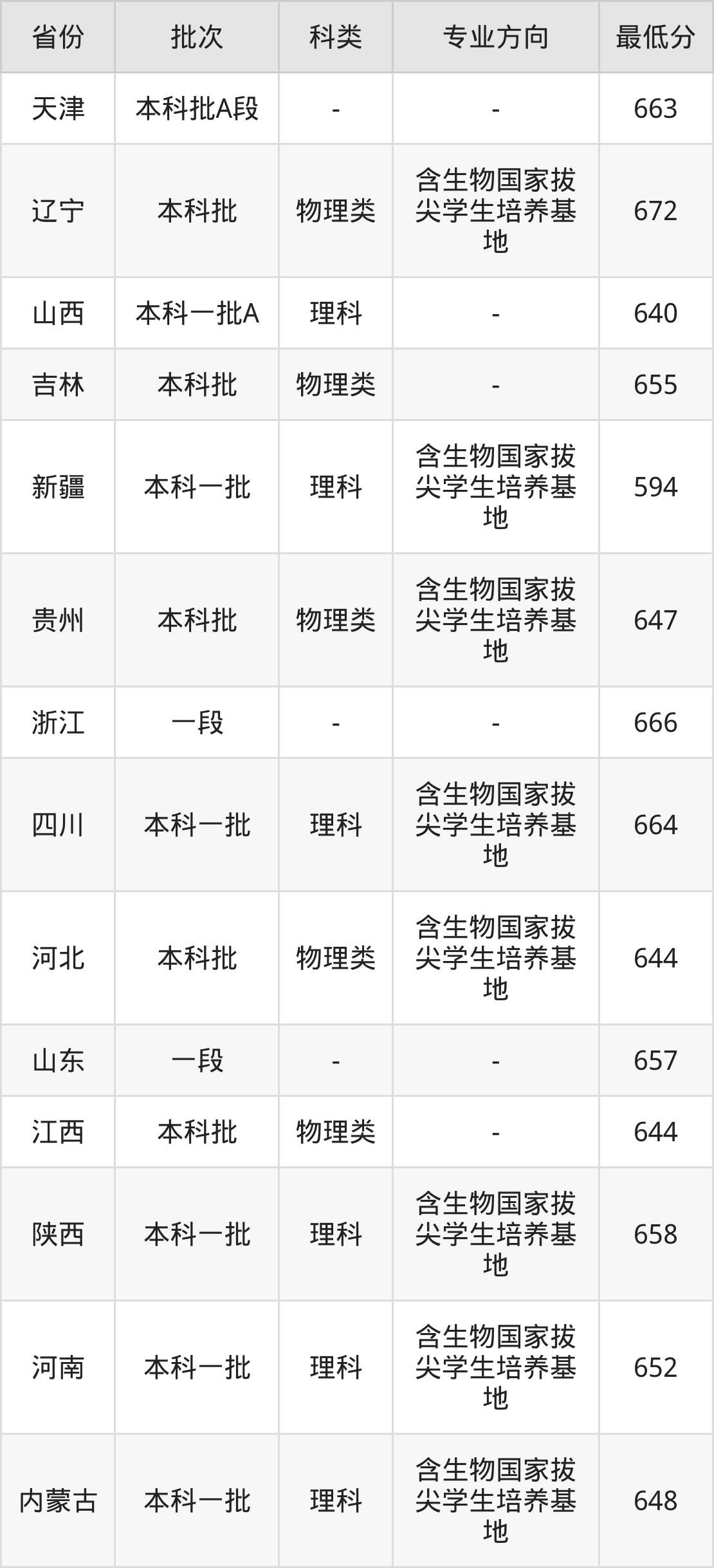 理科664分(含生物国家拔尖学生培养基地、位次2168名);