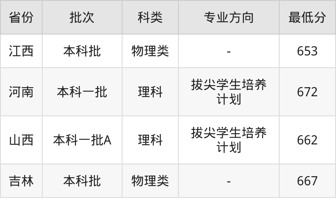 北京航空航天大学化学专业录取分数线2024各省汇总显示,市外招生最低分为江西653分、河南672分、山西662分、吉林667分。更多专业分数详情、选科要求、专业简介等均可在正文查阅。