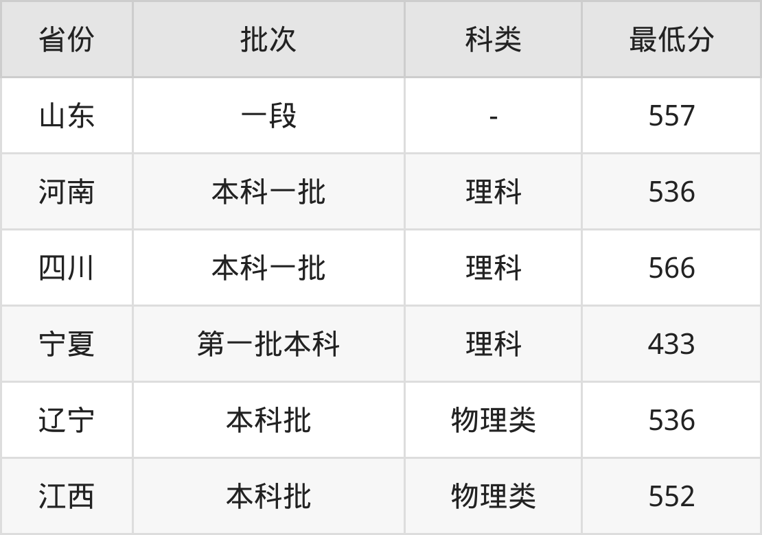 | 批次 | 科类 | 最低分 | 位次 |