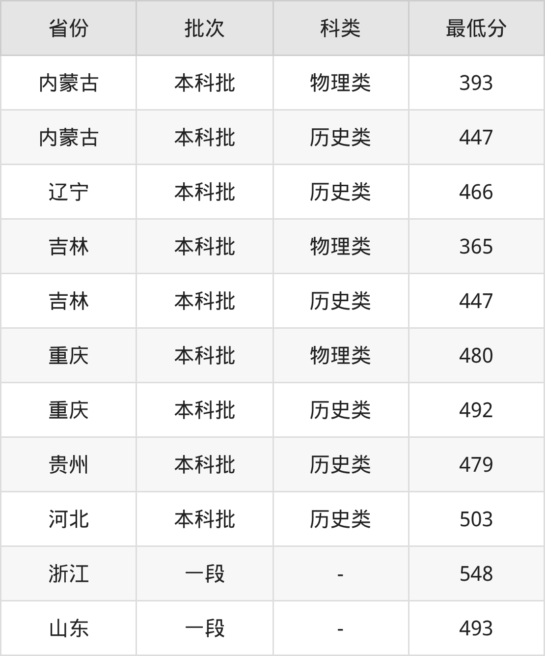 成都外国语学院俄语专业录取分数线2025各省汇总显示,省外招生最低分为贵州479分、河北503分、内蒙古393分、辽宁466分等。更多专业分数详情、选科要求、专业简介等均可在正文查阅。