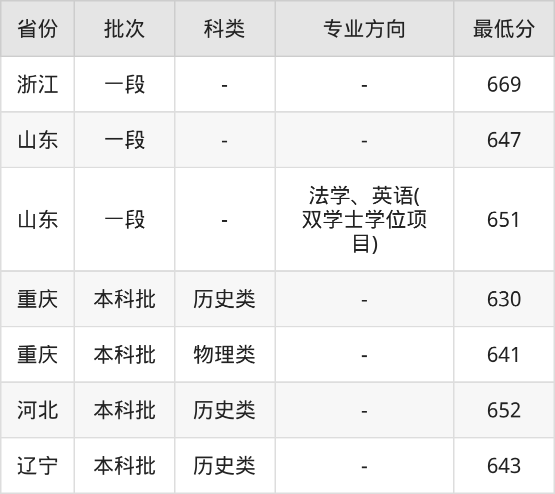 647分(位次4139名),651分(法学、英语(双学士学位项目)、位次3418名);