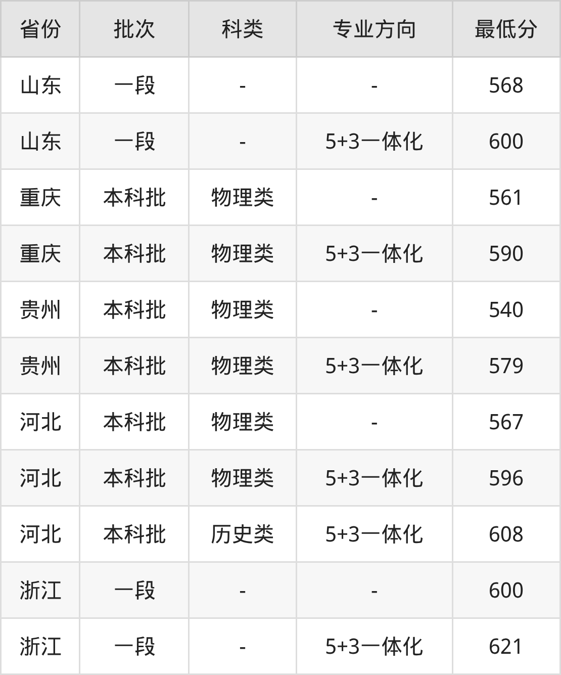 物理类567分(位次59117名),物理类596分(5+3一体化、位次30194名),历史类608分(5+3一体化、位次4350名);