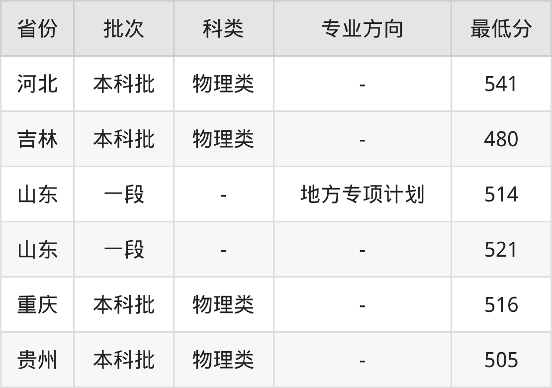| 批次 | 专业方向 | 最低分 | 位次 |