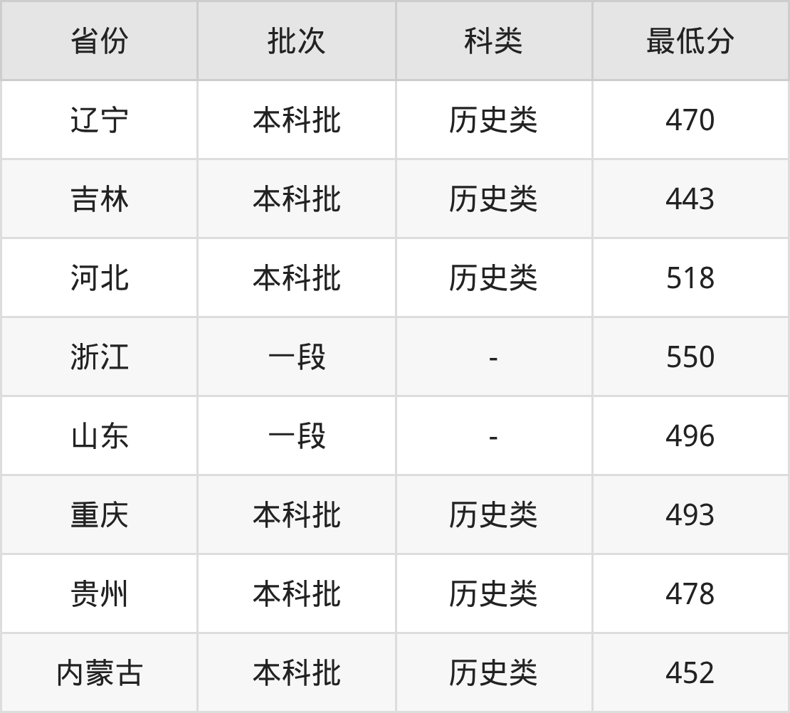 武汉生物工程学院汉语言文学专业录取分数线2025各省汇总显示,省外招生最低分为辽宁470分、吉林443分、浙江550分、山东496分等。更多专业分数详情、选科要求、专业简介等均可在正文查阅。