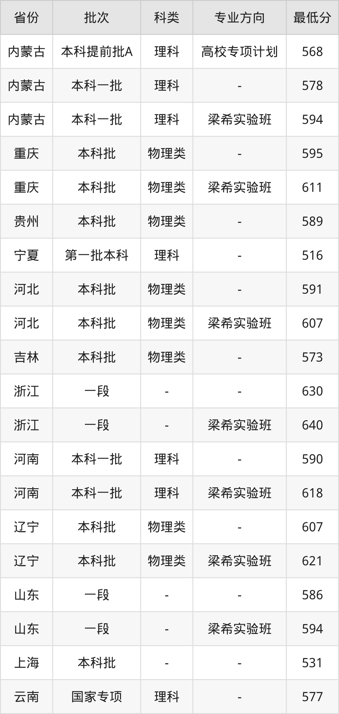 630分(位次25300名),640分(梁希实验班、位次18369名);