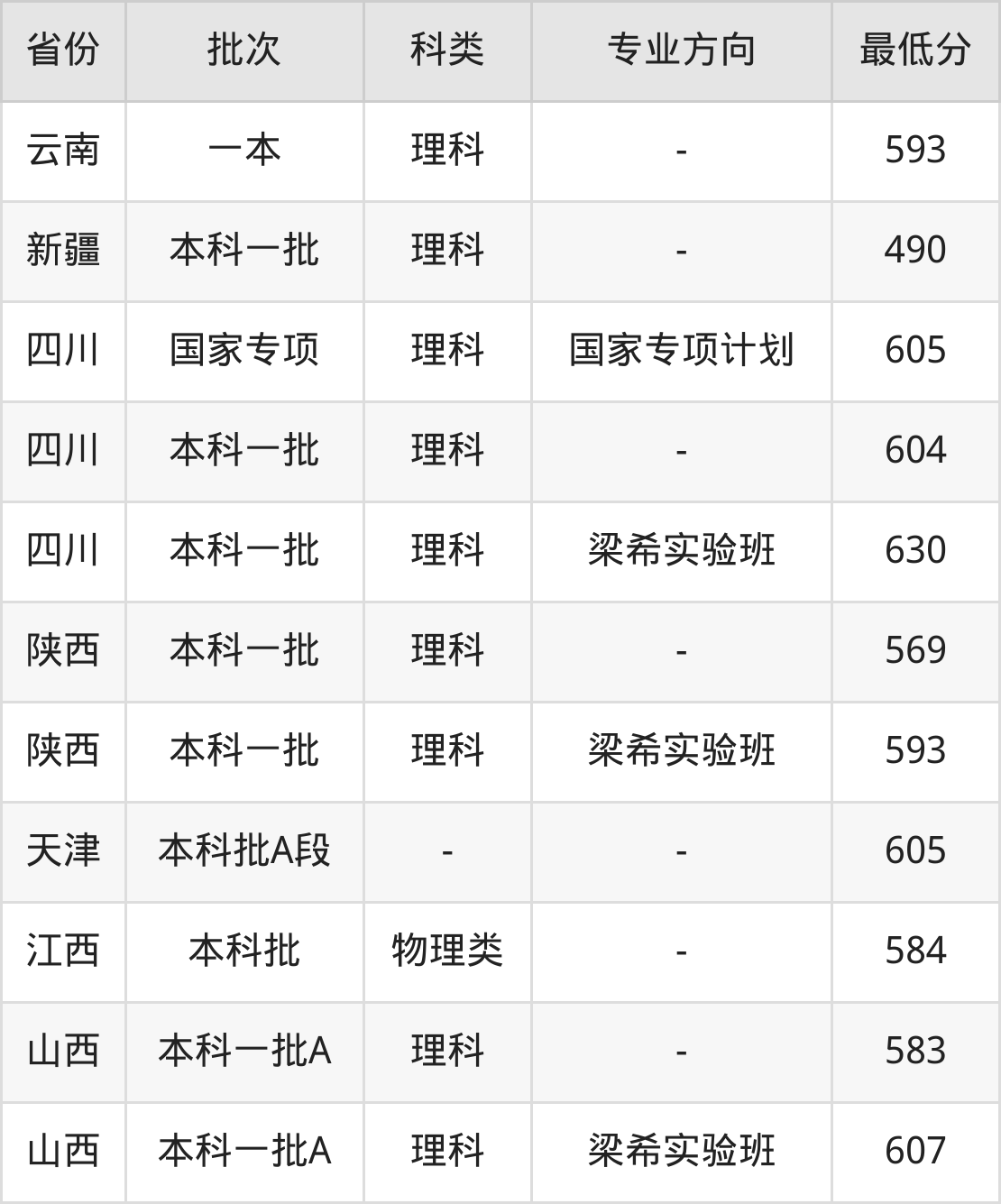理科605分(国家专项计划、位次23113名),理科604分(位次23708名),理科630分(梁希实验班、位次10776名)。