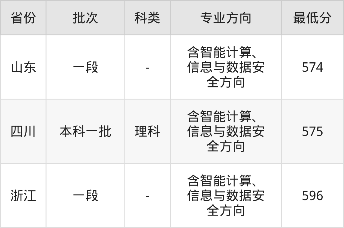 理科575分(含智能计算、信息与数据安全方向、位次45579名);