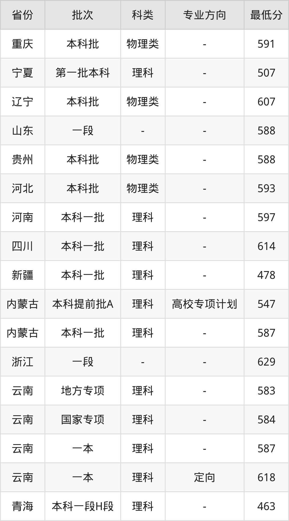 | 批次 | 科类 | 专业方向 | 最低分 | 位次 |
