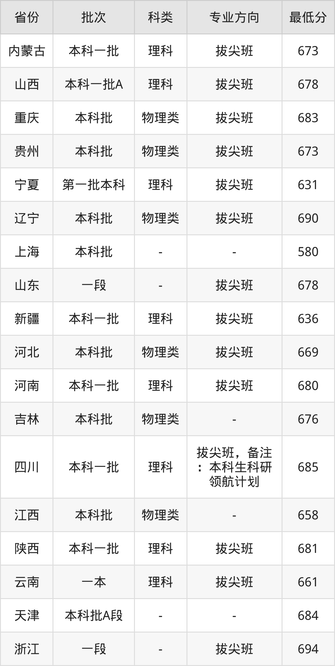 物理类673分(拔尖班、位次250名);