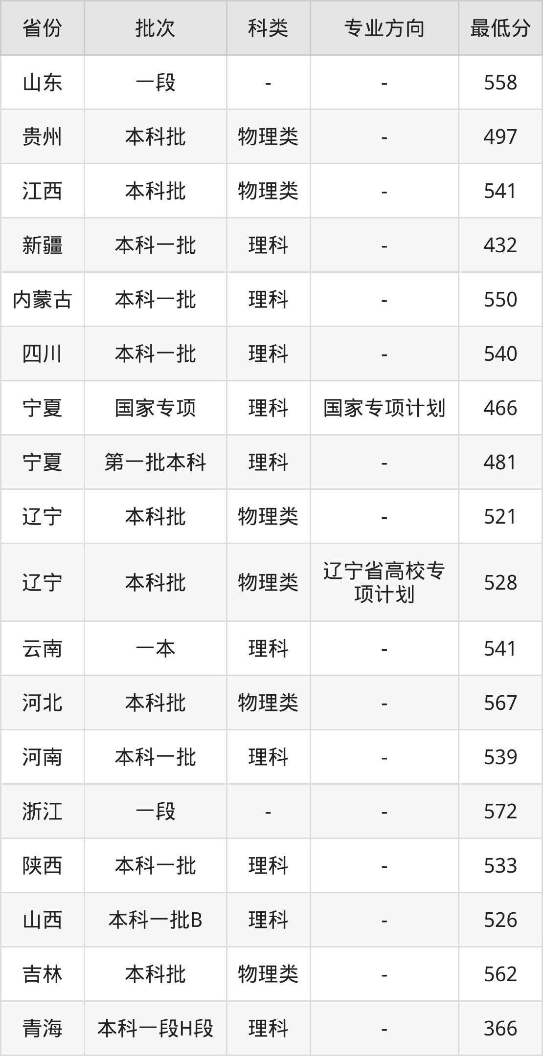 | 批次 | 科类 | 专业方向 | 最低分 | 位次 |