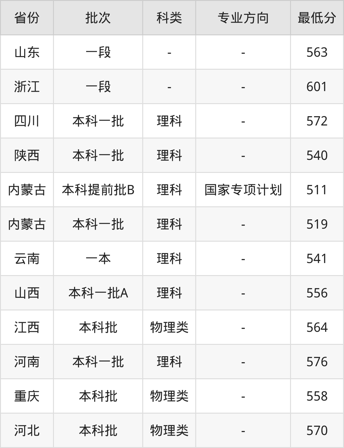 | 批次 | 科类 | 专业方向 | 最低分 | 位次 |