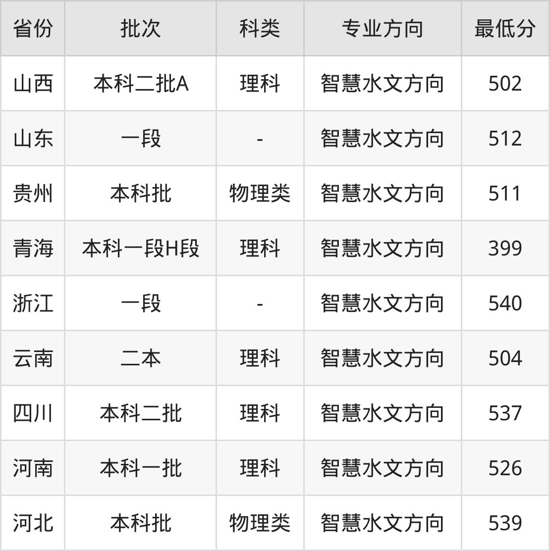 | 本科一批 | 理科 | 智慧水文方向 | 526 | 106610 |