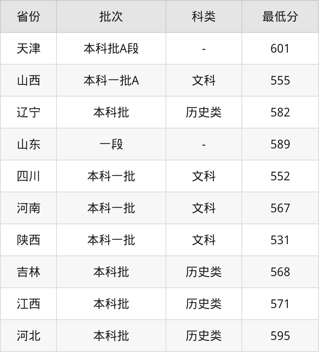 2024年燕山大学法学专业在省外招生分数线各不相同,具体如下: