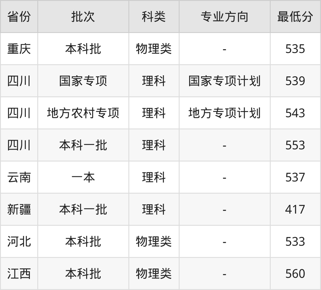 | 批次 | 科类 | 专业方向 | 最低分 | 位次 |
