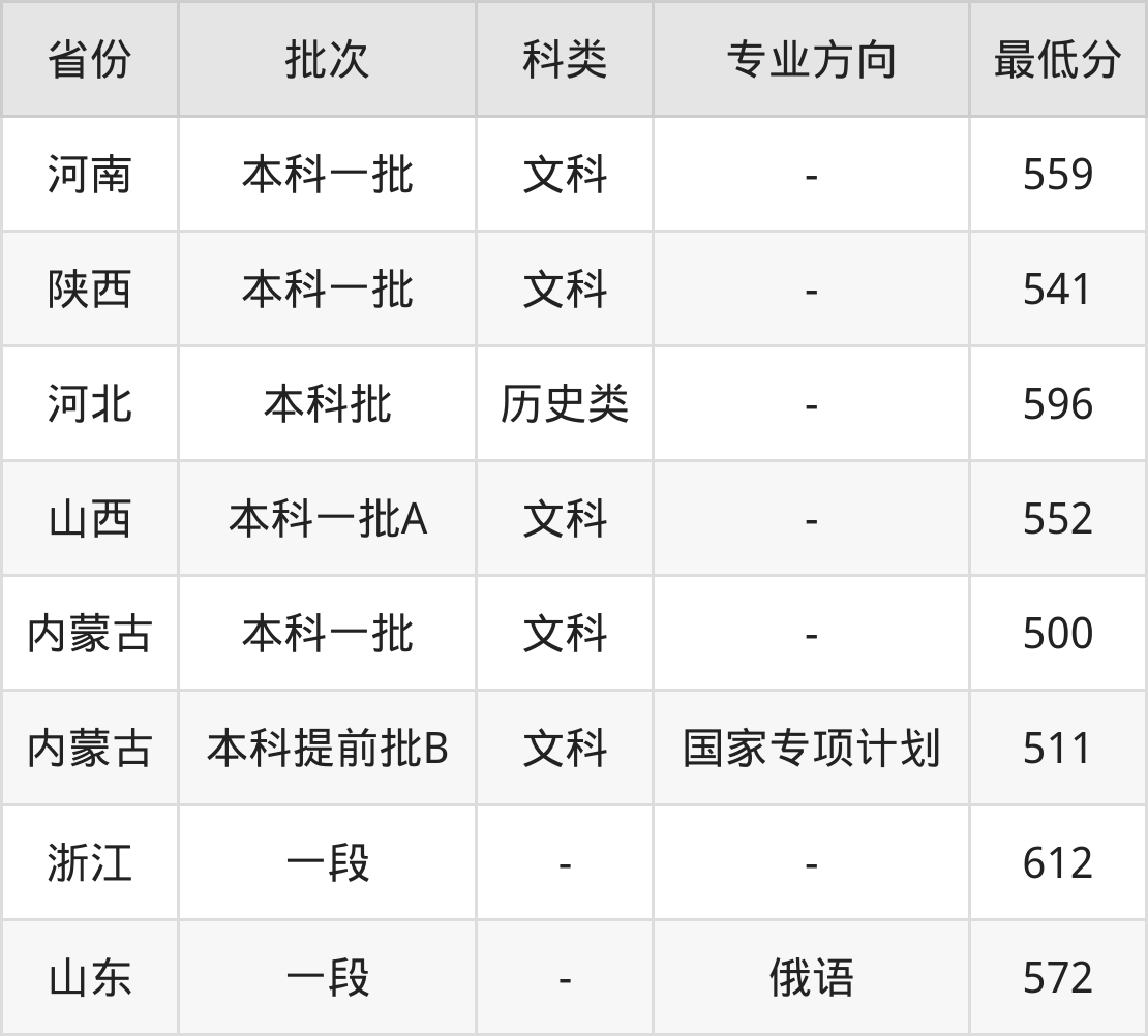 2024年内蒙古大学俄语专业在自治区外招生分数线各不相同,具体如下: