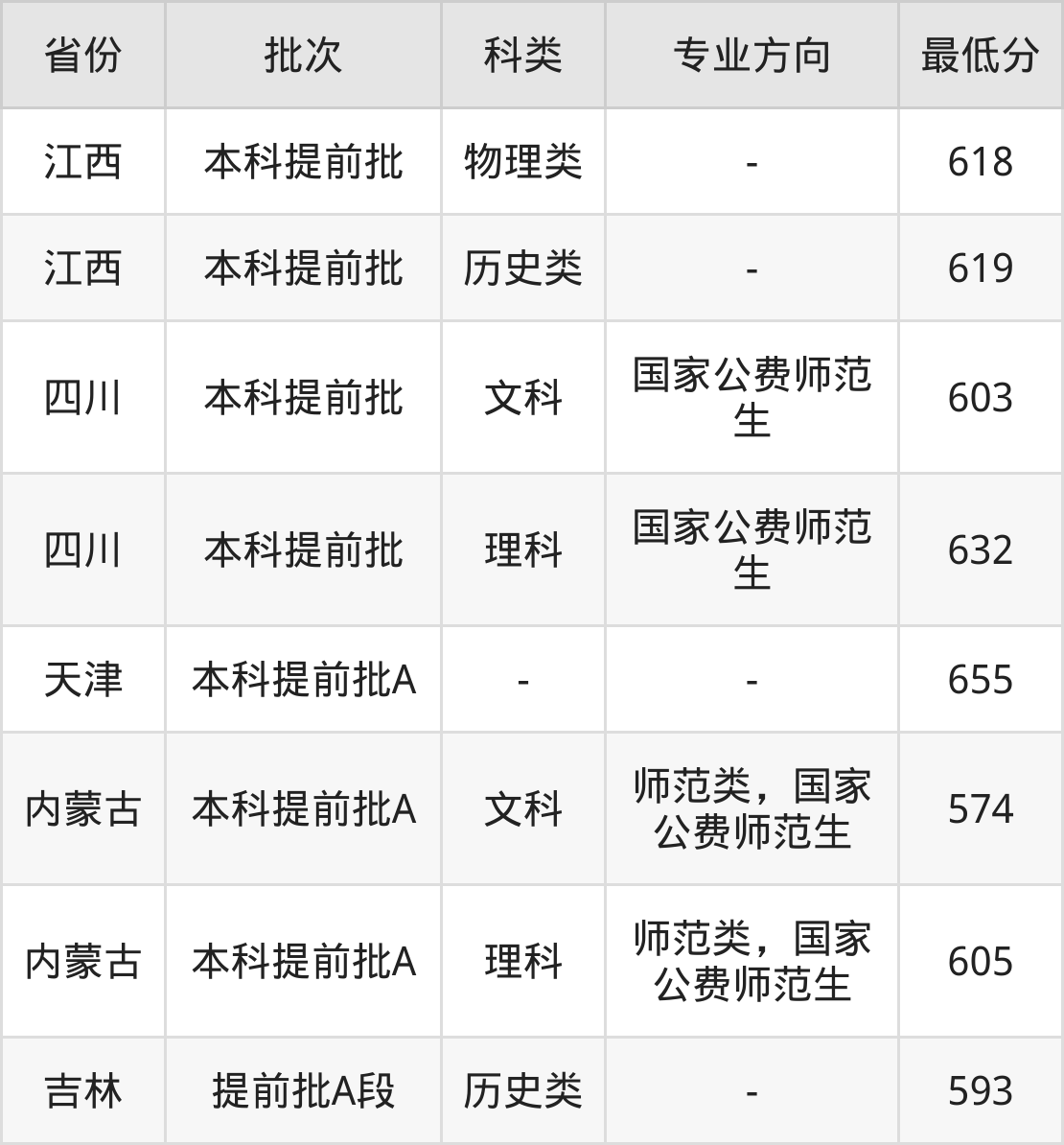 文科603分(国家公费师范生、位次1102名),理科632分(国家公费师范生、位次10024名)。
