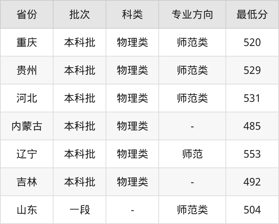 物理类520分(师范类、位次49565名);
