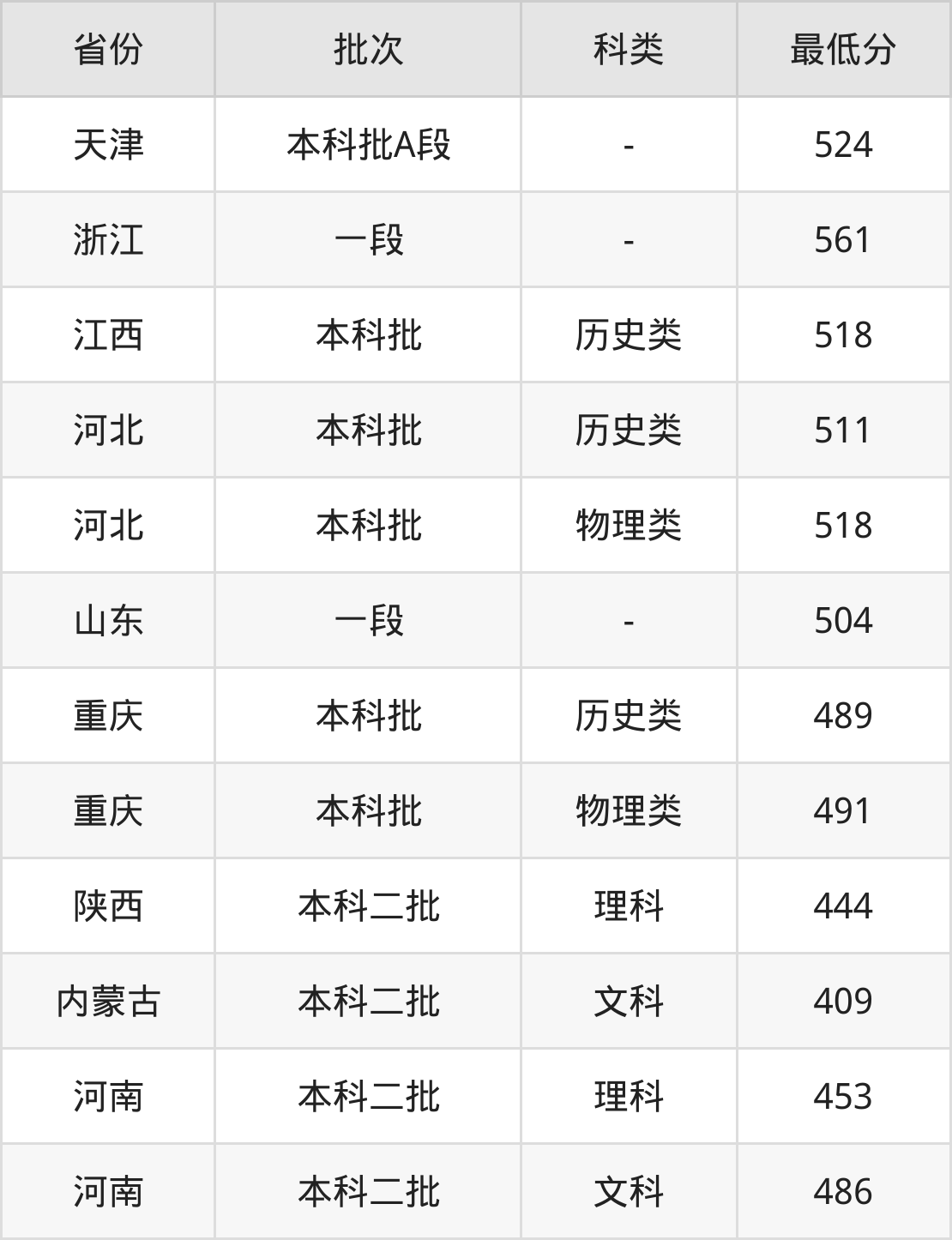 2024年河北金融学院商务英语专业在省外招生分数线各不相同,具体如下: