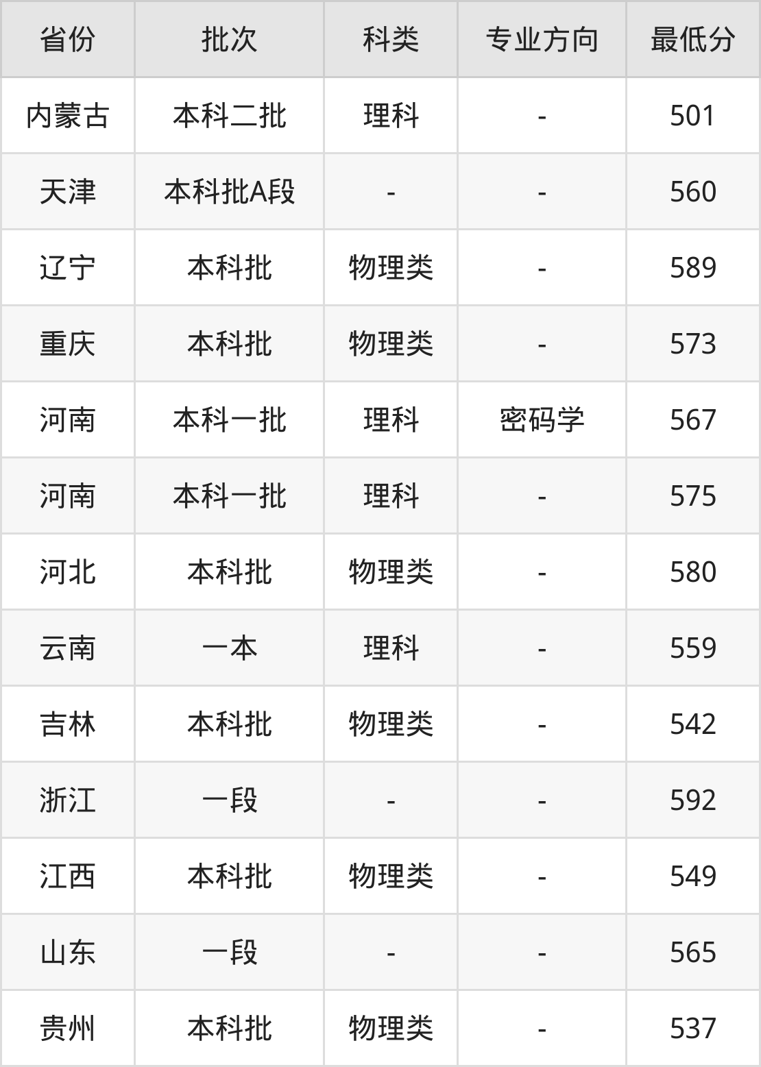 | 本科一批 | 理科 | 密码学 | 567 | 52721 |
