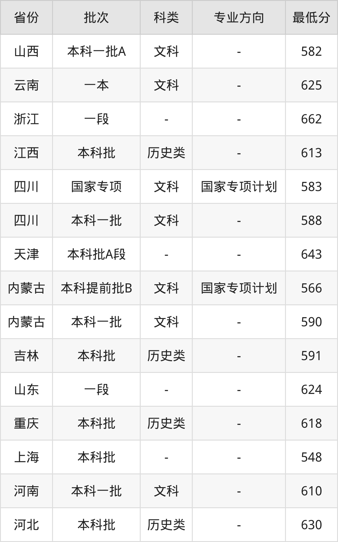 文科583分(国家专项计划、位次3150名),文科588分(位次2509名);