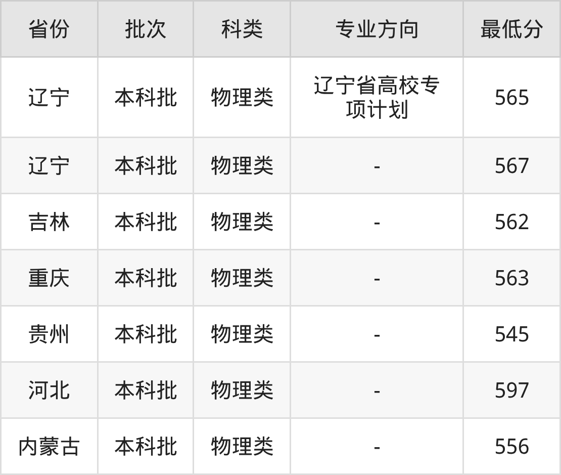 | 本科批 | 物理类 | 辽宁省高校专 项计划 | 565 | 26382 |