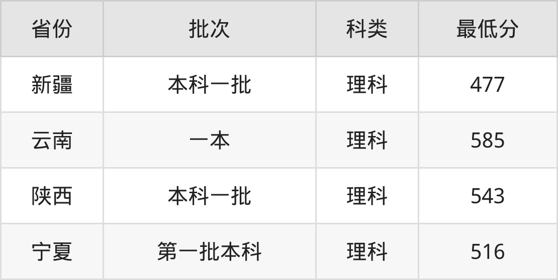 | 批次 | 科类 | 最低分 | 位次 |
