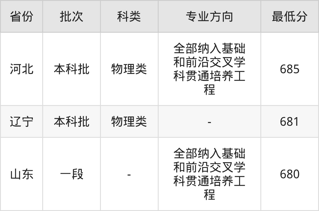 物理类685分(全部纳入基础和前沿交叉学科贯通培养工程、位次146名)。