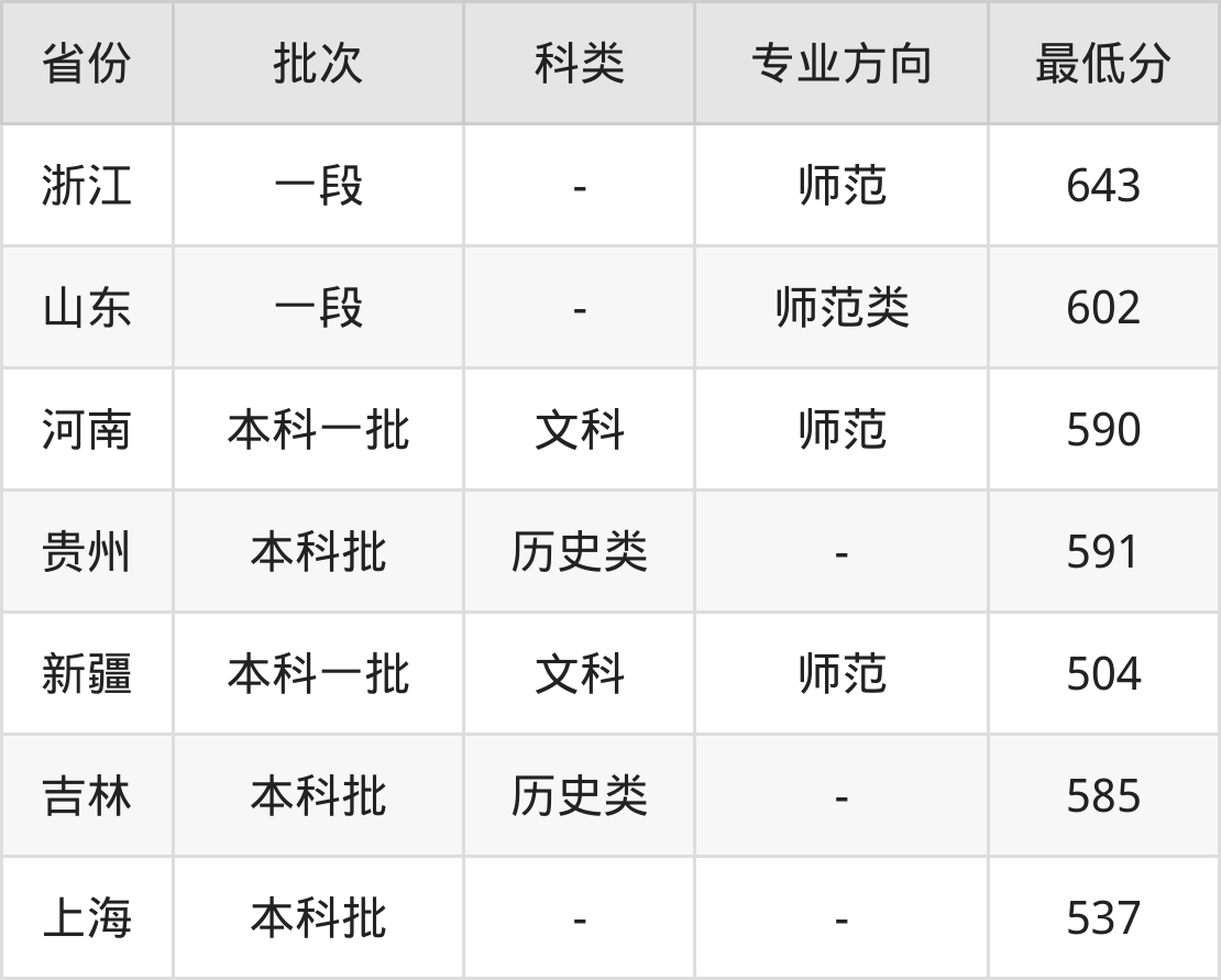 南京师范大学学前教育专业录取分数线2024各省汇总显示,省外招生最低分为河南590分、贵州591分、新疆504分、吉林585分等。更多专业分数详情、选科要求、专业简介等均可在正文查阅。