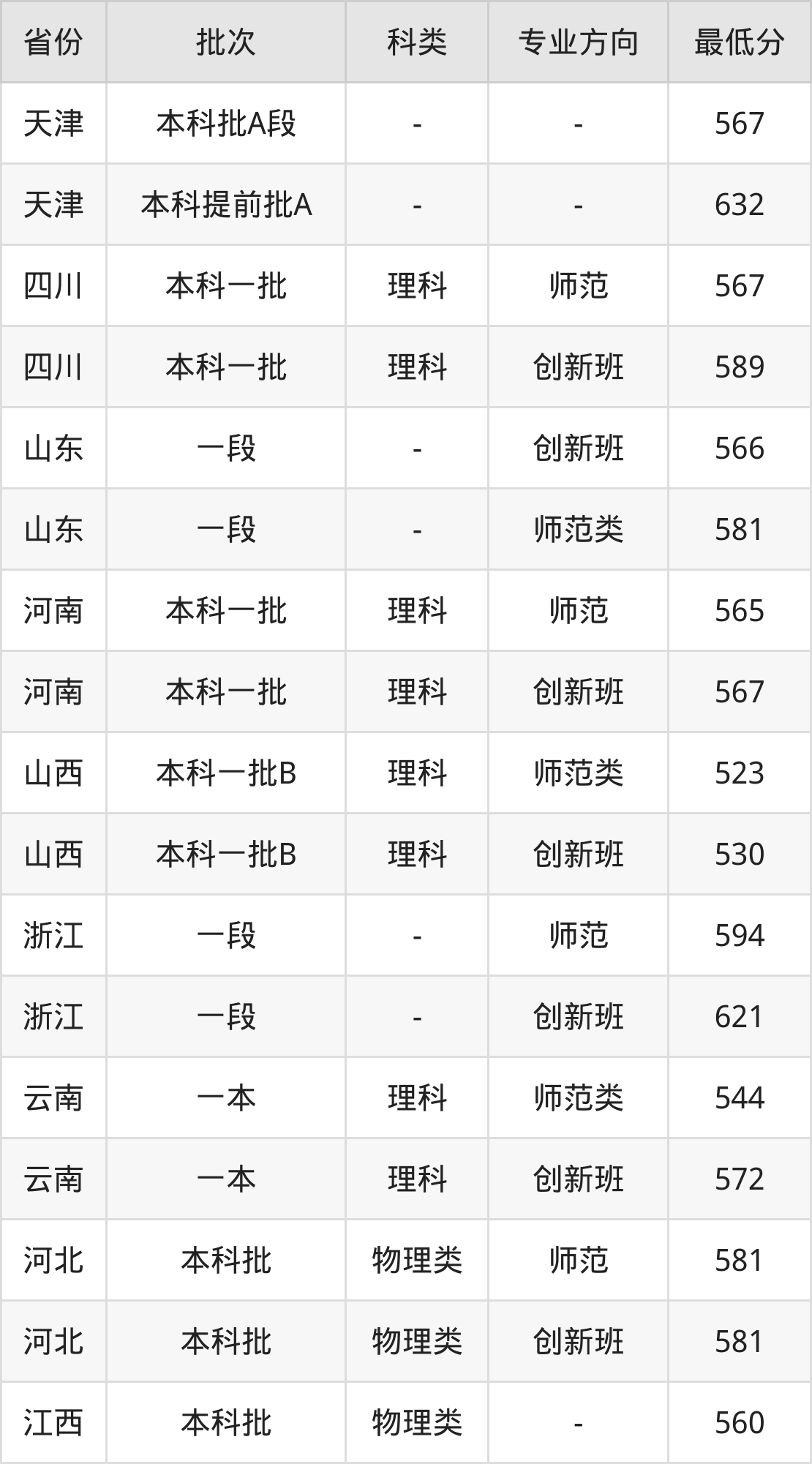 物理类581分(师范、位次27901名),物理类581分(创新班、位次27901名);