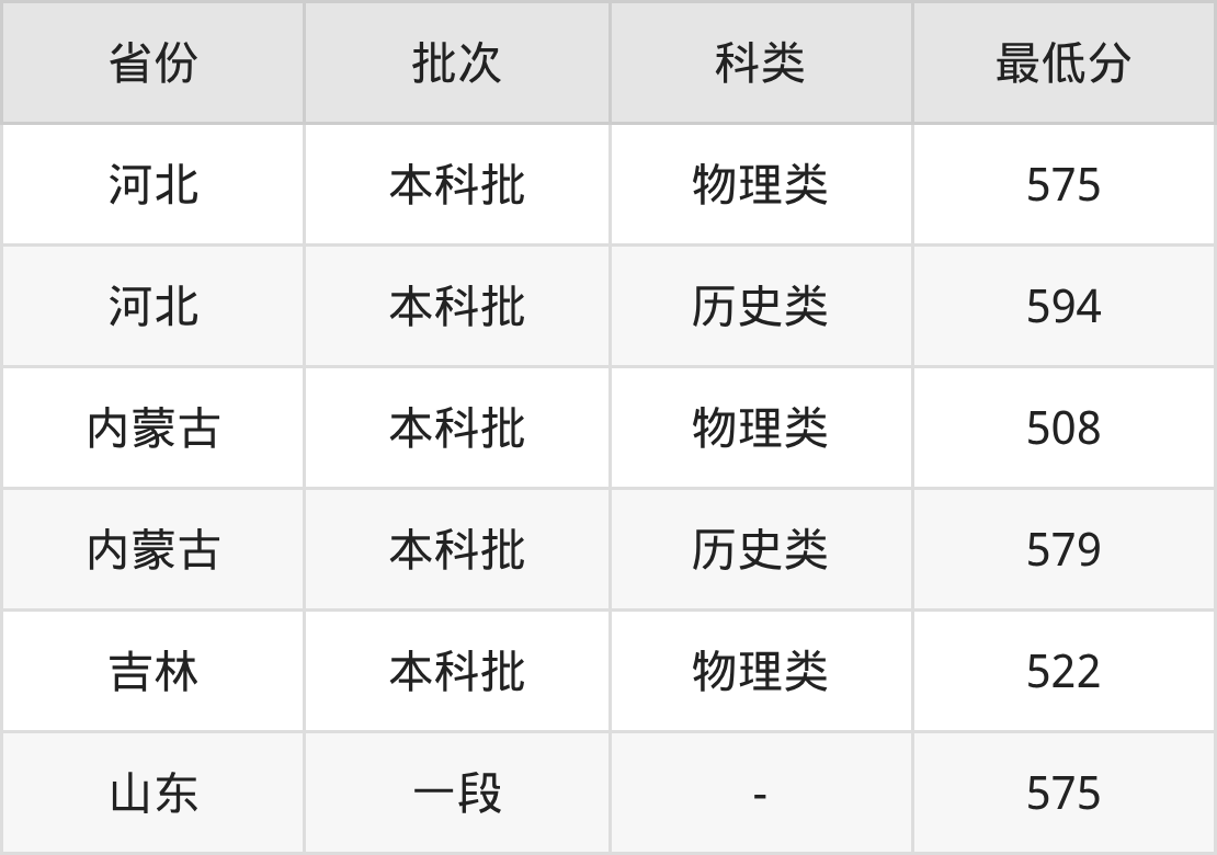 | 批次 | 科类 | 最低分 | 位次 |