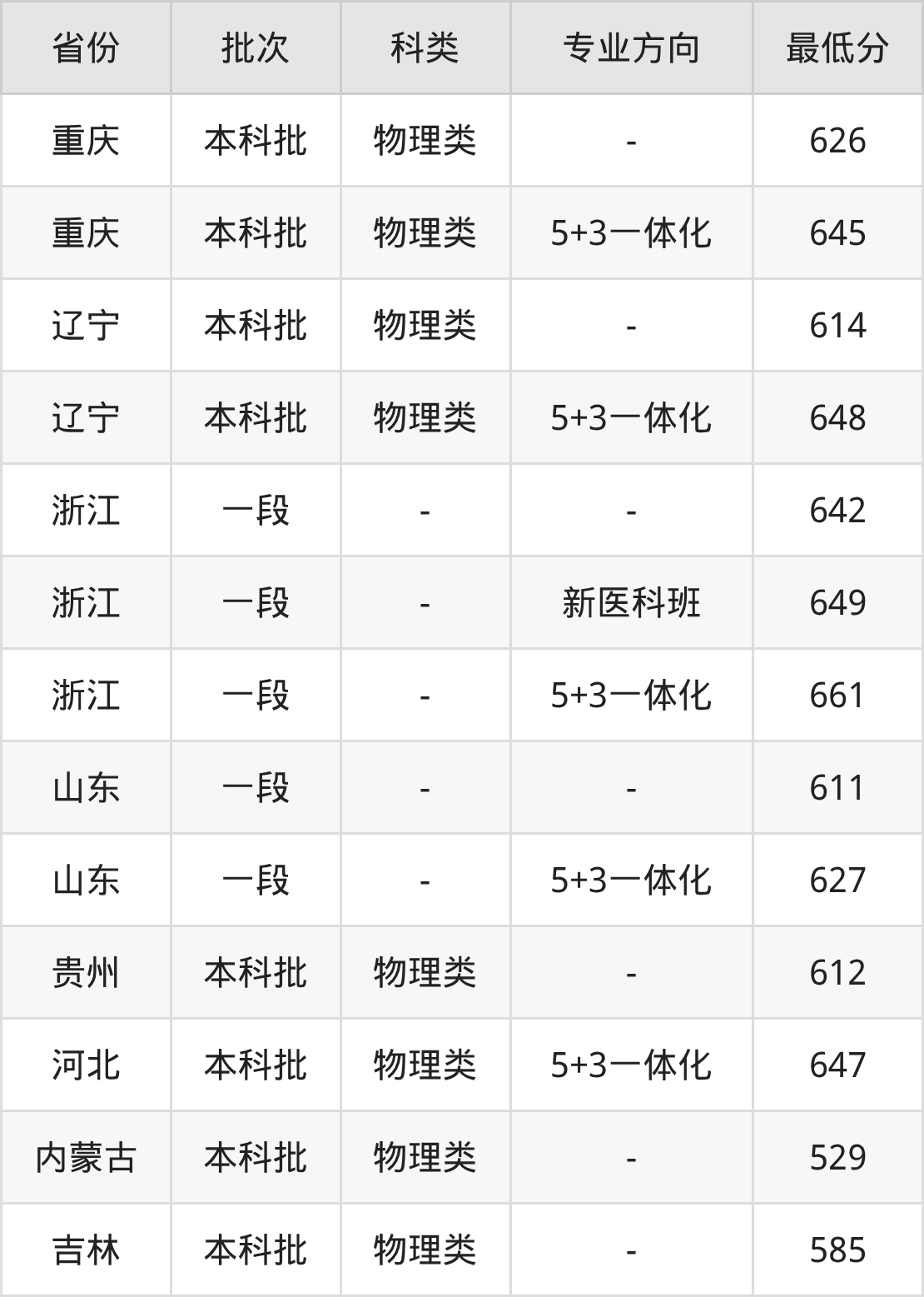 2025年温州医科大学眼视光医学专业在省外招生分数线各不相同,具体如下: