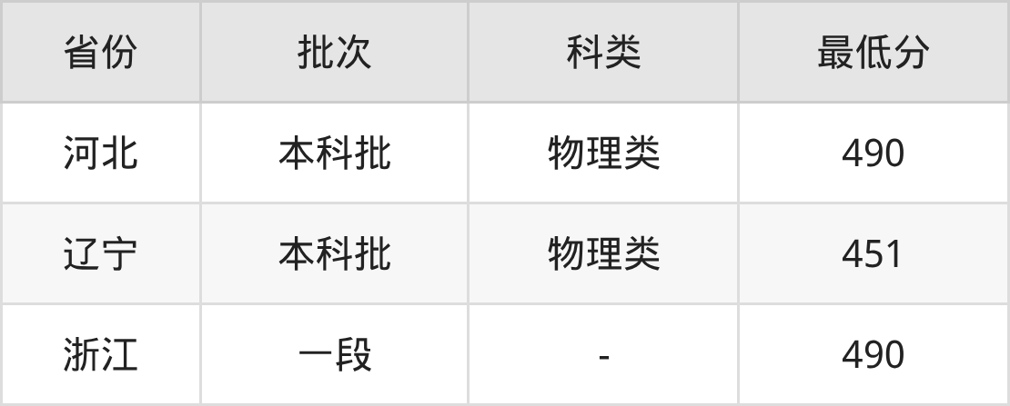 | 批次 | 科类 | 最低分 | 位次 |