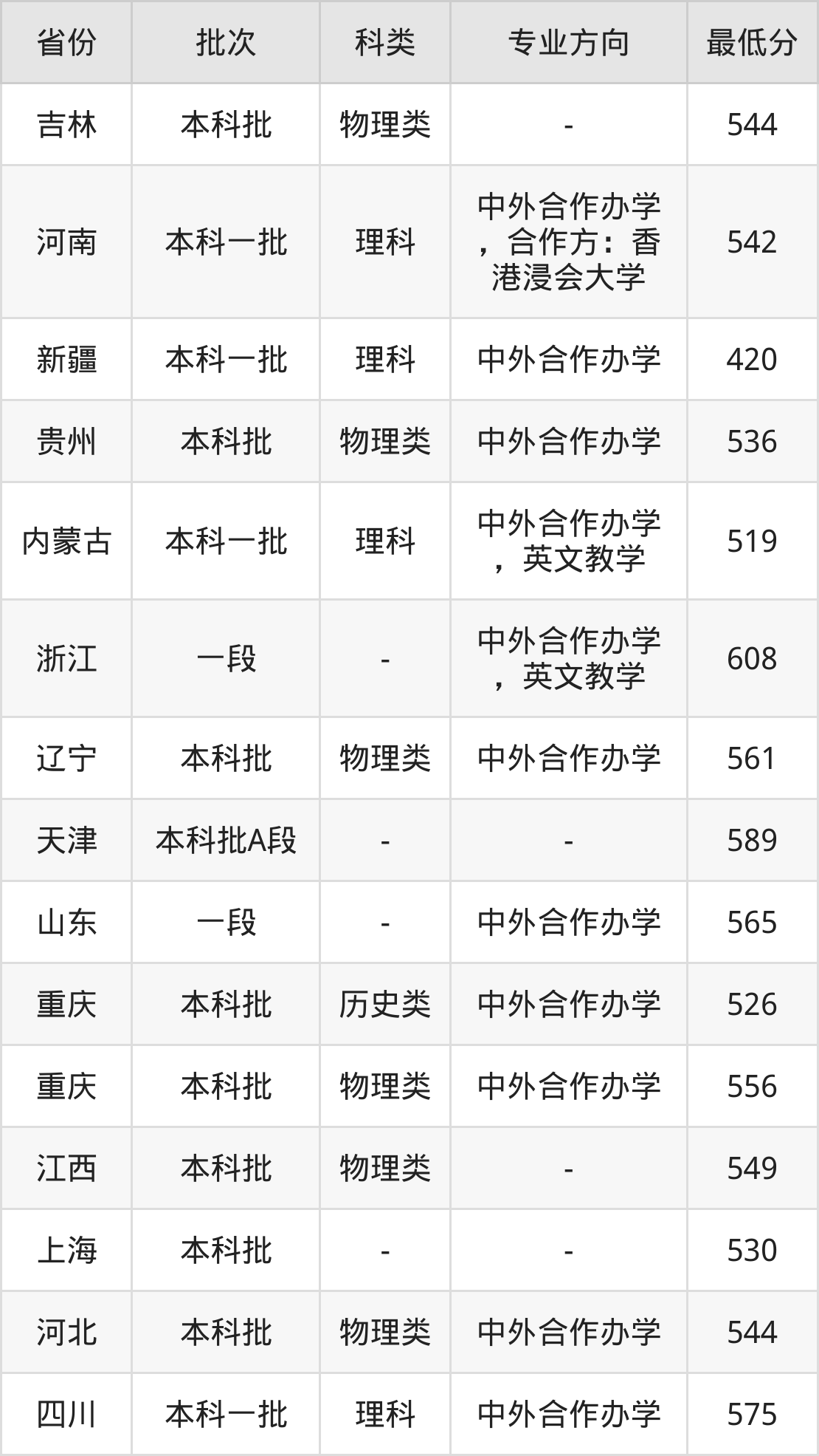 理科542分(中外合作办学,合作方:香港浸会大学、位次83672名);
