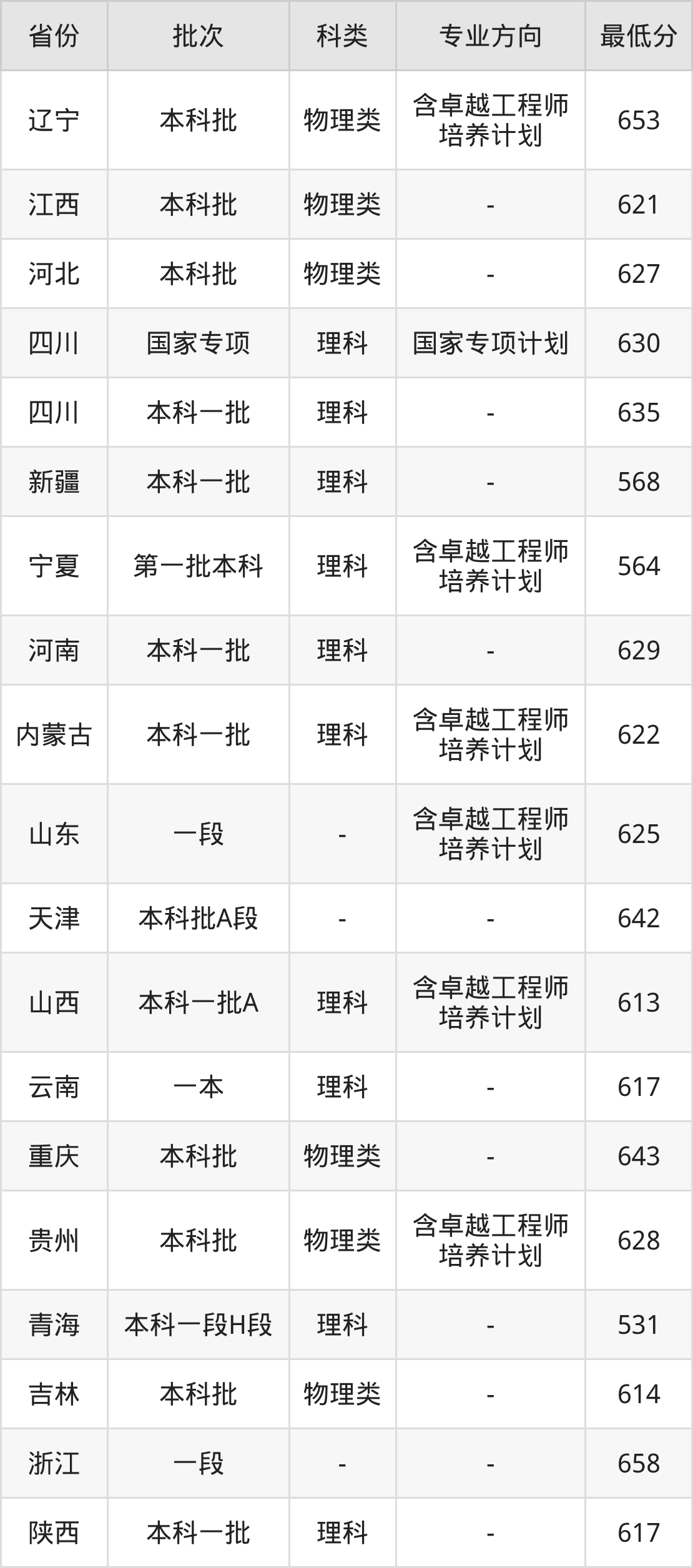 物理类653分(含卓越工程师培养计划、位次3132名);