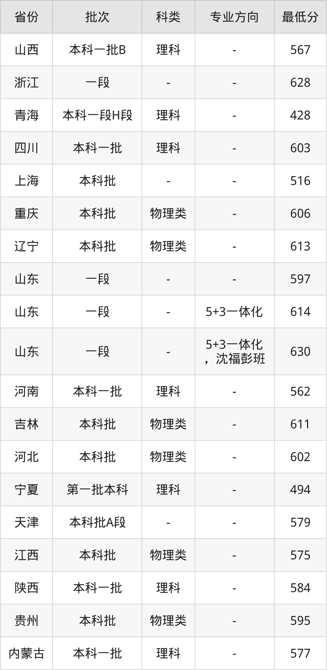 | 批次 | 专业方向 | 最低分 | 位次 |