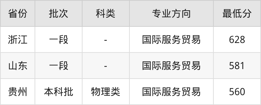 北京第二外国语学院国际经济与贸易专业录取分数线2024各省汇总显示,市外招生最低分为贵州560分、浙江628分、山东581分。更多专业分数详情、选科要求、专业简介等均可在正文查阅。