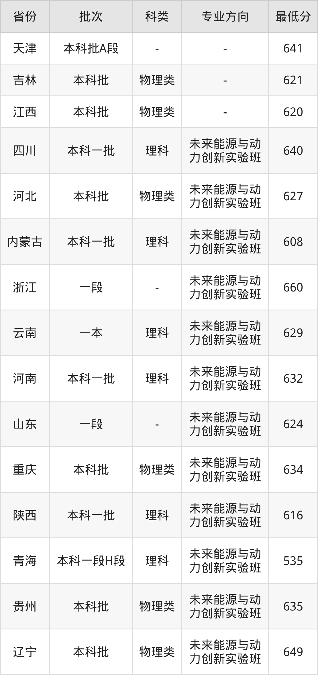 物理类649分(未来能源与动力创新实验班、位次3711名);