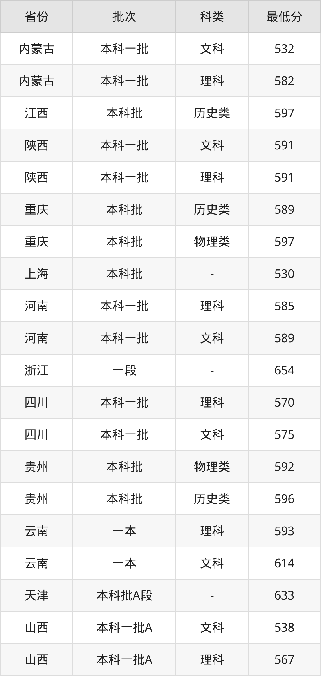 2024年华东政法大学网络与新媒体专业在市外招生分数线各不相同,具体如下: