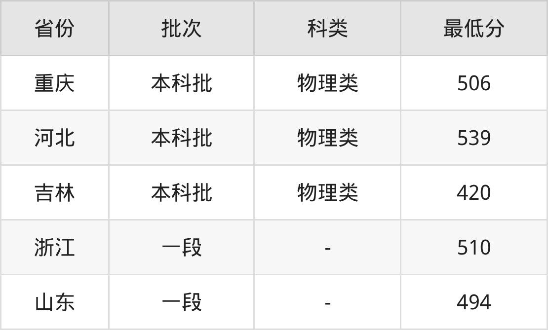 | 批次 | 科类 | 最低分 | 位次 |