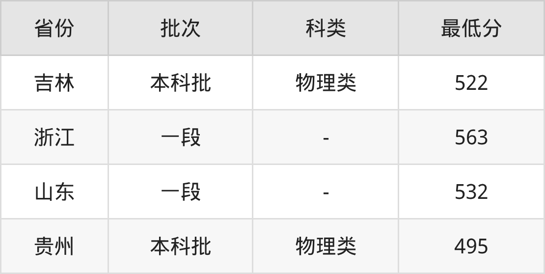 上海电机学院焊接技术与工程专业录取分数线2025各省汇总显示,市外招生最低分为吉林522分、浙江563分、山东532分、贵州495分。更多专业分数详情、选科要求、专业简介等均可在正文查阅。